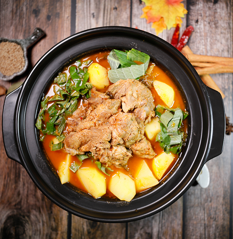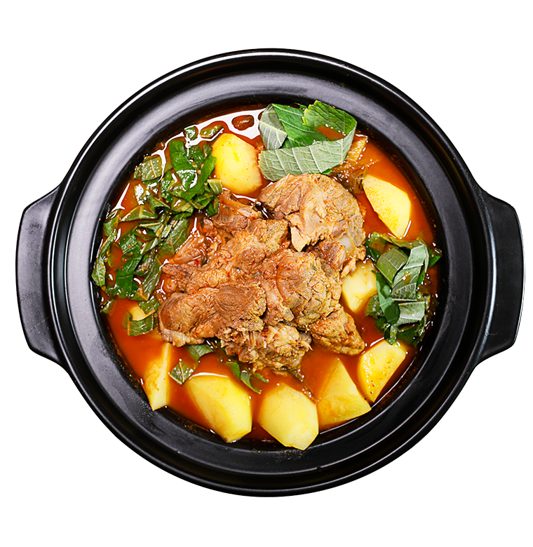 豬脊骨、辣白菜、韓式年糕、韓式香腸、茼蒿、土豆、紫蘇葉、金針菇、香菇、洋蔥、干白菜