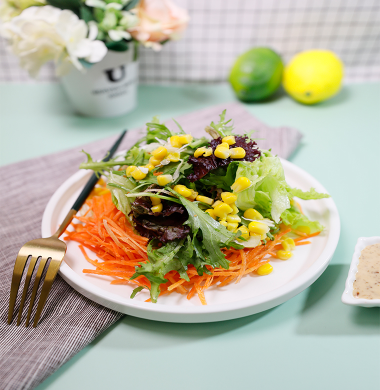 西生菜、生菜、胡蘿卜、玉米粒、苦苣、紫葉生菜